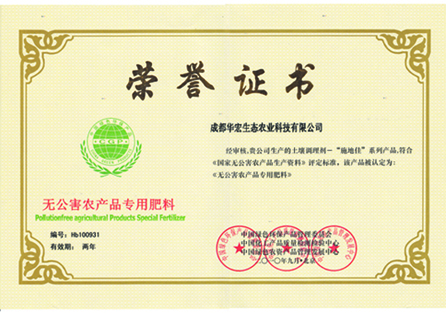 “施地佳”土壤調理劑系列產(chǎn)品榮獲中國“無公害農(nóng)產(chǎn)品專用肥料”榮譽 2013/12/24 華宏生物 “施地佳”土壤調理劑系列產(chǎn)品榮獲中國 “無公害農(nóng)產(chǎn)品專用肥料”榮譽