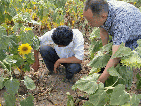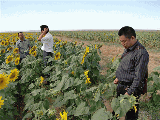 2011年,公司復合微生物菌劑成功防治新疆阿勒泰地區(qū)葵花列當組圖