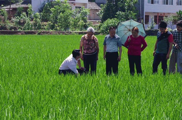 圖3:公司員工親自到稻田察看超級(jí)稻分蘗情況