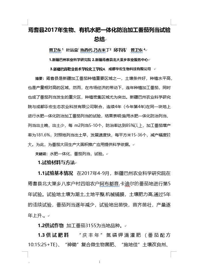 焉耆縣2017年生物、有機水肥一體化防治加工番茄列當(dāng)試驗總結(jié)