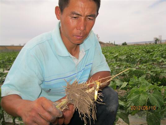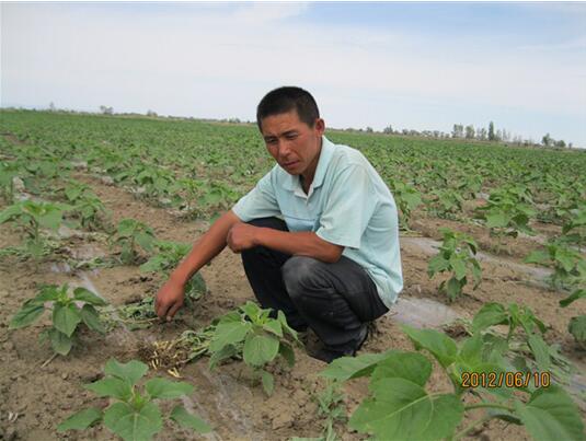 2012年,新疆阿勒泰地區(qū)科技特派員周琴視察“吉祥雨”復合微生物菌劑防治葵花列當圖 2014-02-15 華宏生物 2012年,新疆阿勒泰地區(qū)科技特派員周琴 視察“吉祥雨”復合微生物菌劑防治葵花列當圖 圖片編輯:陽光